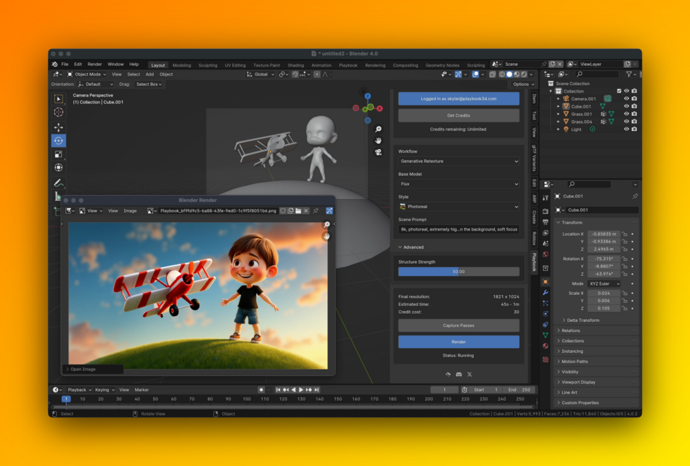 The Playbook Blender Plugin allows for diffusion based rendering in the cloud using ComfyUI.